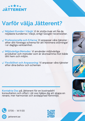 Företagslogga och grafisk profil: Vi designade en företagslogga som innehåller fem stjärnor, vilket symboliserar de betyg företaget får från Google. Idag har Jätterent Städ 47 recensioner med ett totalt betyg på fem stjärnor. Den nya logotypen och den sammanhängande grafiska profilen hjälper till att stärka företagets identitet och varumärke.